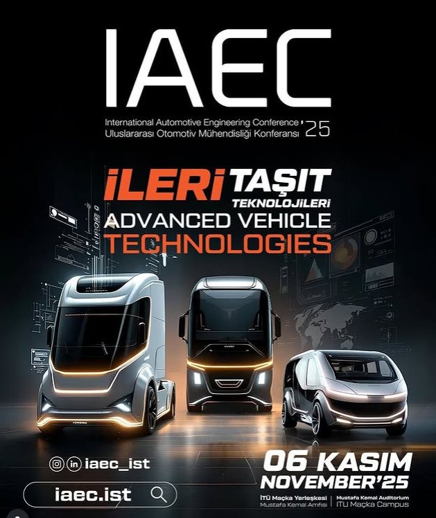 OİB Otomotiv Endüstrisi İhracatçıları Birliği (OİB), Otomotiv Sanayii Derneği (OSD), Otomotiv Teknoloji Platformu / Automotive Technology Platform (OTEP) ve Taşıt Araçları Tedarik Sanayicileri Derneği (TAYSAD) tarafından, Society of Automotive Engineers (SAE) iş birliği ile düzenlenen IAEC 2025, 6 Kasım 2025 tarihinde İTÜ Maçka Yerleşkesi Mustafa Kemal Amfisi’nde gerçekleşecek. Her yıl farklı temalarıyla otomotiv mühendisliğinin geleceğine ışık tutan IAEC, 10. yılında “İleri Taşıt Teknolojileri” ana teması çerçevesinde düzenlenecek ve Yapay Zeka & Otonomi Alternatif Tahrik & Yakıt Sistemleri Malzeme Teknolojileri başlıklarını odağına alacak.