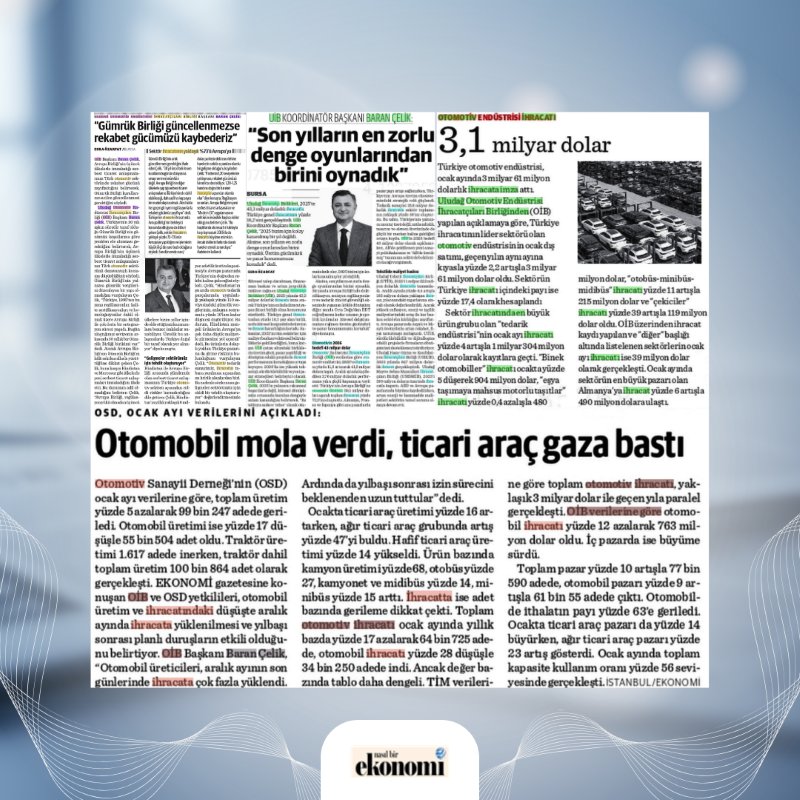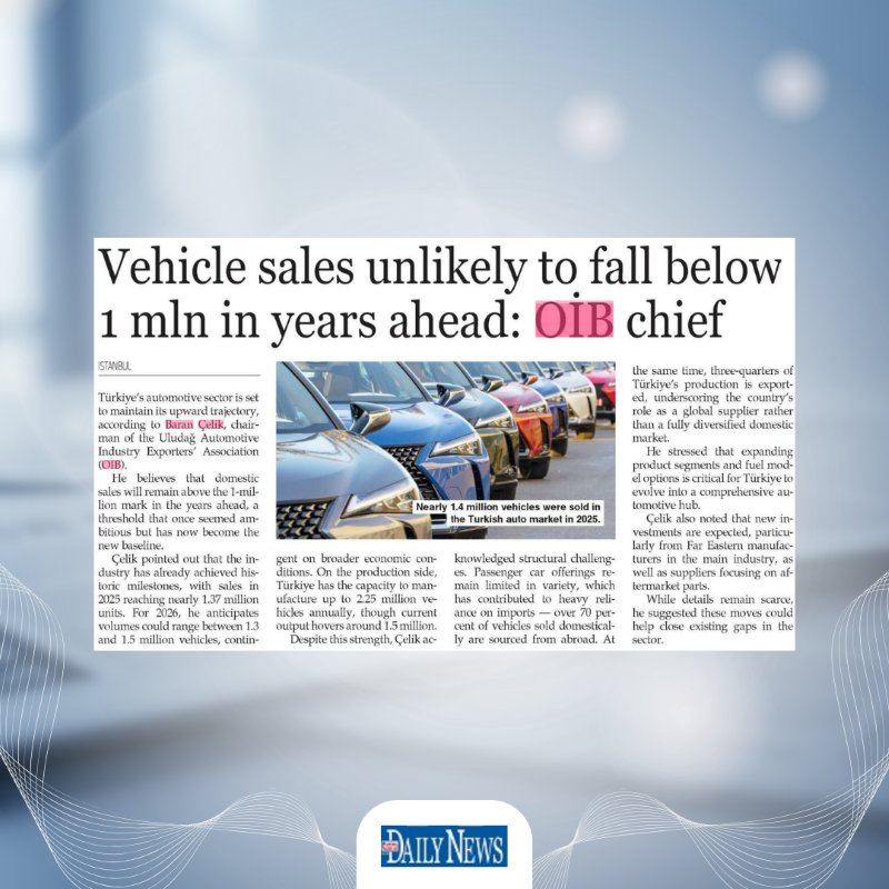 Yönetim Kurulu Başkanımız Baran Çelik, CNBC-e canlı yayınında otomotiv sektörünün gündemine ilişkin değerlendirmelerde bulundu. Röportajda; Avrupa pazarındaki son gelişmeler, ticari araç ihracatının seyri ve Türk otomotiv sanayinin rekabet gücüne ilişkin önemli mesajlar paylaşıldı. Çelik, küresel pazardaki belirsizliklere rağmen Türk otomotiv sektörünün üretim gücü, esnek yapısı ve ihracat kabiliyetiyle güçlü konumunu koruduğunu vurguladı.