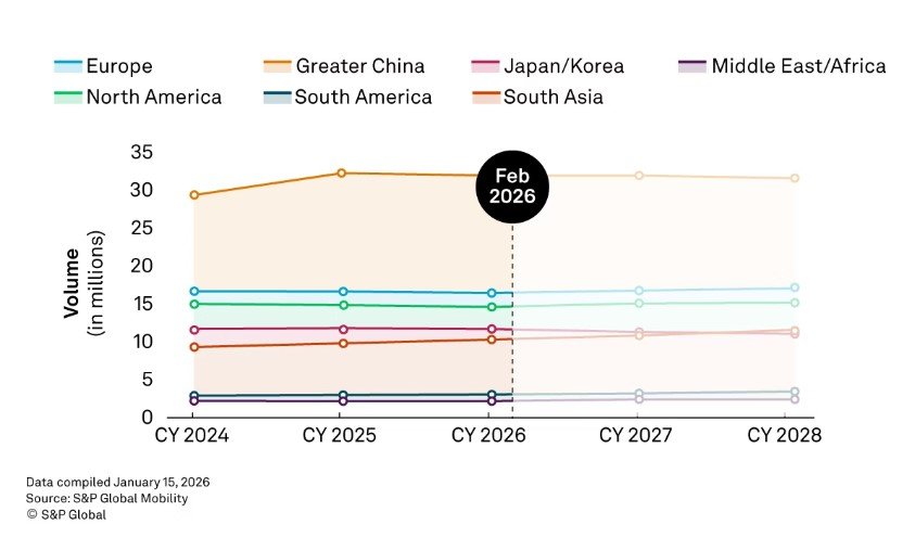 Şubat 2026 verilerine göre, küresel hafif araç üretim tahminlerinde bölgesel bazlı güncellemeler öne çıkıyor. S&P Global Mobility'nin raporuna göre, Avrupa'da Toyota ve Renault liderliğindeki olumlu kısa vadeli seyirle üretim beklentileri 39 bin adet artırılırken, Çin pazarında iç talep zorlukları ve stok eritme ihtiyacı nedeniyle üretimde %10'luk bir daralma öngörülüyor.
