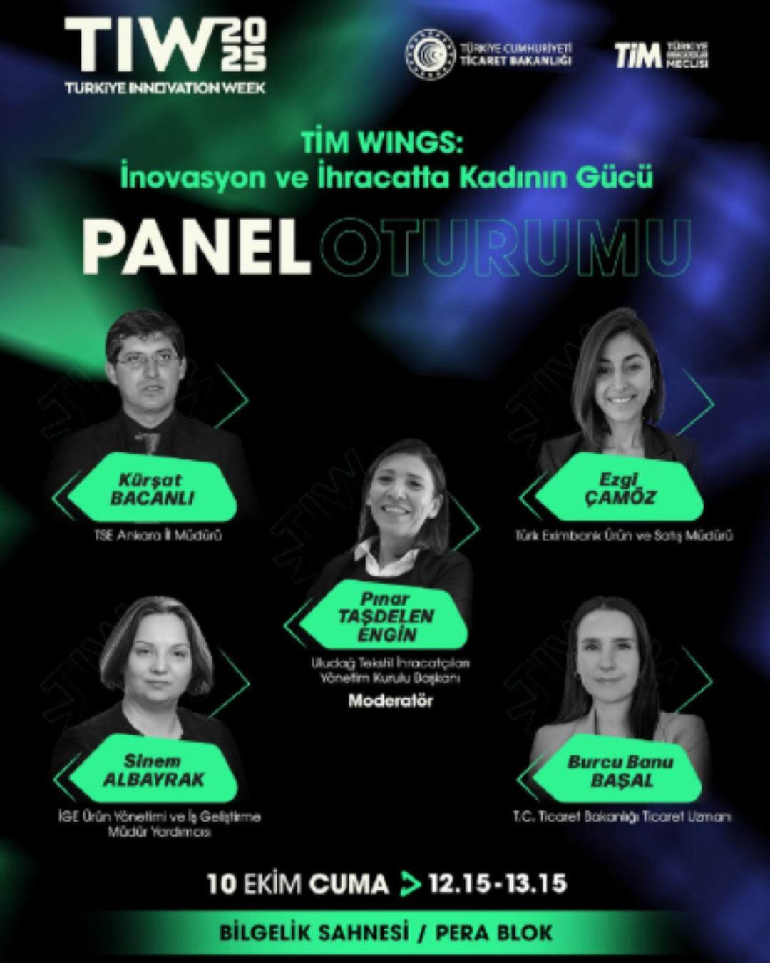 TİM WINGS programı kapsamında düzenlenecek “İnovasyon ve İhracatta Kadın Gücü” paneli UTİB Yönetim Kurulu Başkanımız Pınar Taşdelen Engin’in moderatörlüğünde gerçekleştirilecektir. Panelde, inovasyon ve ihracatta fark yaratan kadın liderler deneyimlerini paylaşacak.