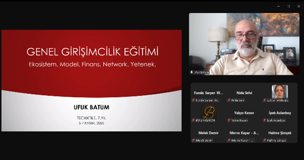 TechXtile Challenge kapsamında düzenlenen “Girişimcilik Nedir?” semineri, Program Koordinatörü Ufuk Batum’un koordinatörlüğünde başarıyla gerçekleştirildi. Katılımcılar; girişimcilik yaklaşımı, iş modeli geliştirme ve yenilikçi düşünme süreçlerine ilişkin değerli bilgiler edinerek projelerini daha ileri taşıyacak önemli kazanımlar elde etti.